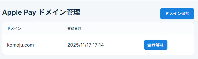 登録が完了すると、一覧にドメインが表示されます