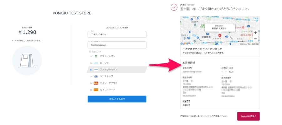 KOMOJUでの決済手続きが終わった後、通常はKOMOJU側の注文完了ページが表示されます。しかし、この機能を使うと、そのページをスキップして直接Shopifyの「Thank you(サンク)」ページへお客様をご案内することができます。