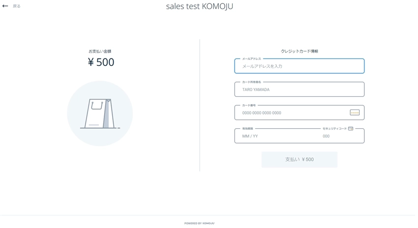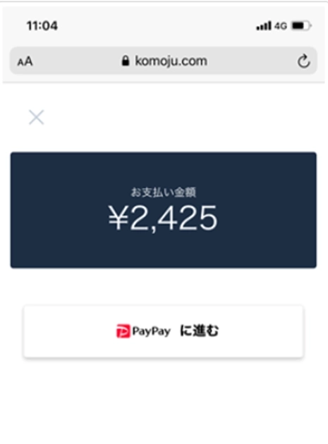 お客様がKOMOJUの決済画面で「支払い」ボタンを押す前に商品が在庫切れになった場合、自動的にShopifyの画面に戻り、在庫切れのメッセージが表示されます。この時点では、ShopifyにもKOMOJUにも注文や決済のデータは作成されません。
