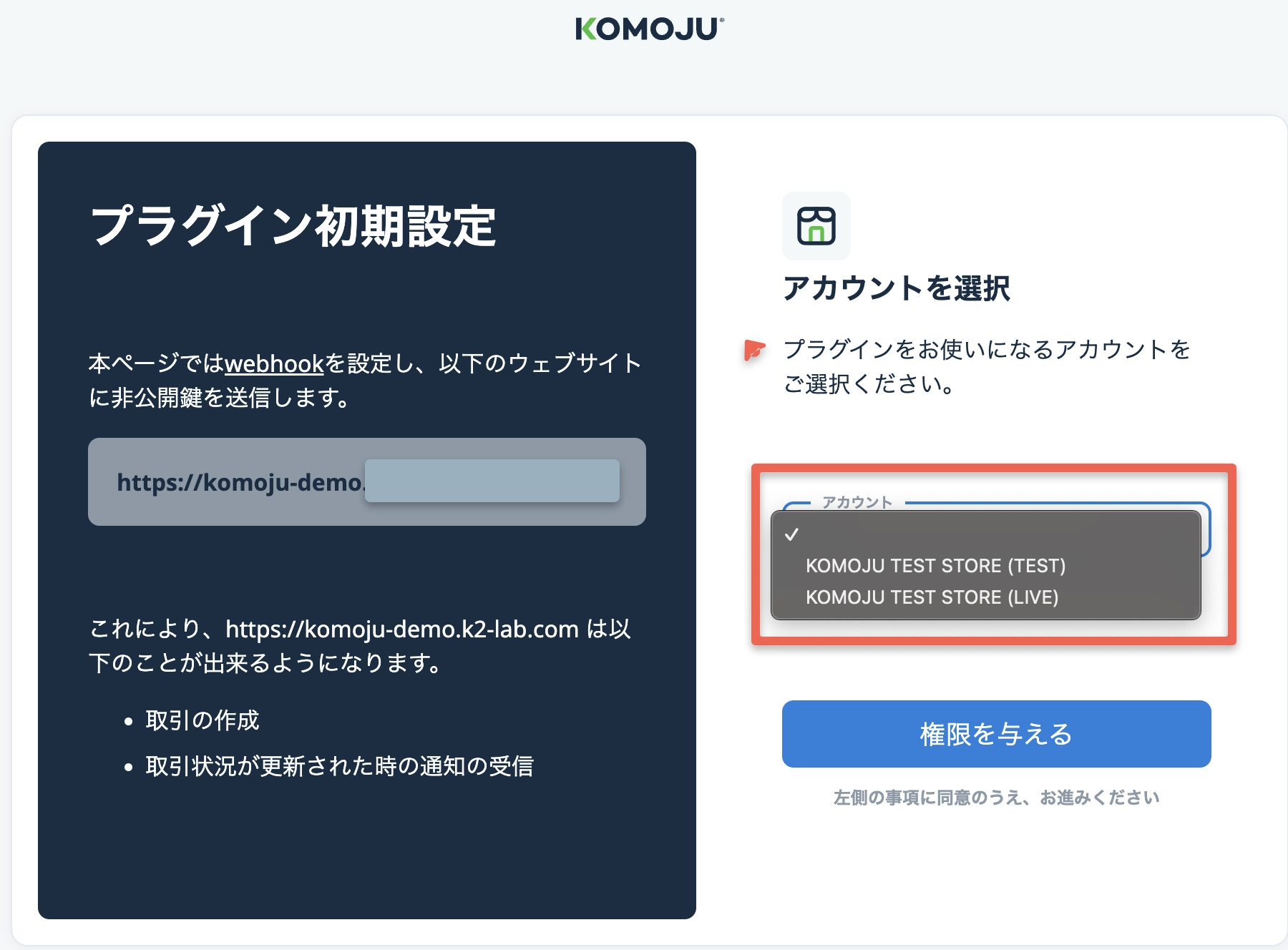 KOMOJUアカウントの接続