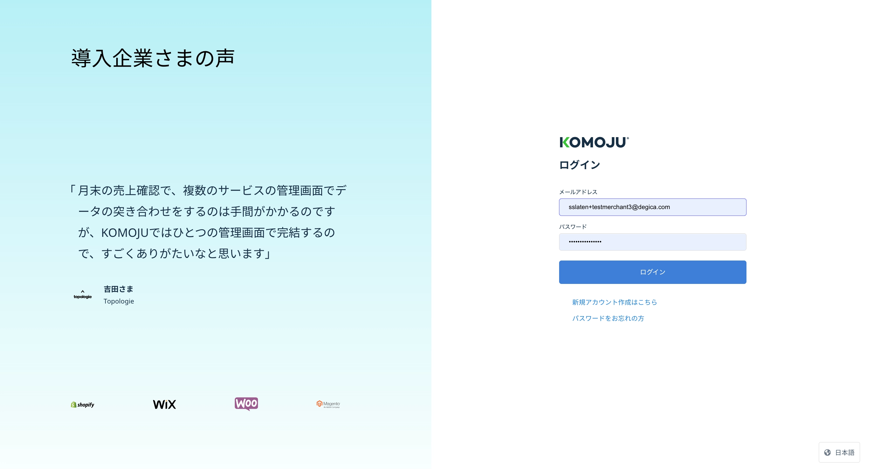 - KOMOJUアカウント — アカウントをお持ちでない場合はこちらからご登録ください